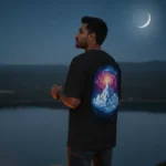 Where the summit meets the stars. This surreal back-print blends the rugged beauty of the mountains with the infinite wonder of the cosmos.