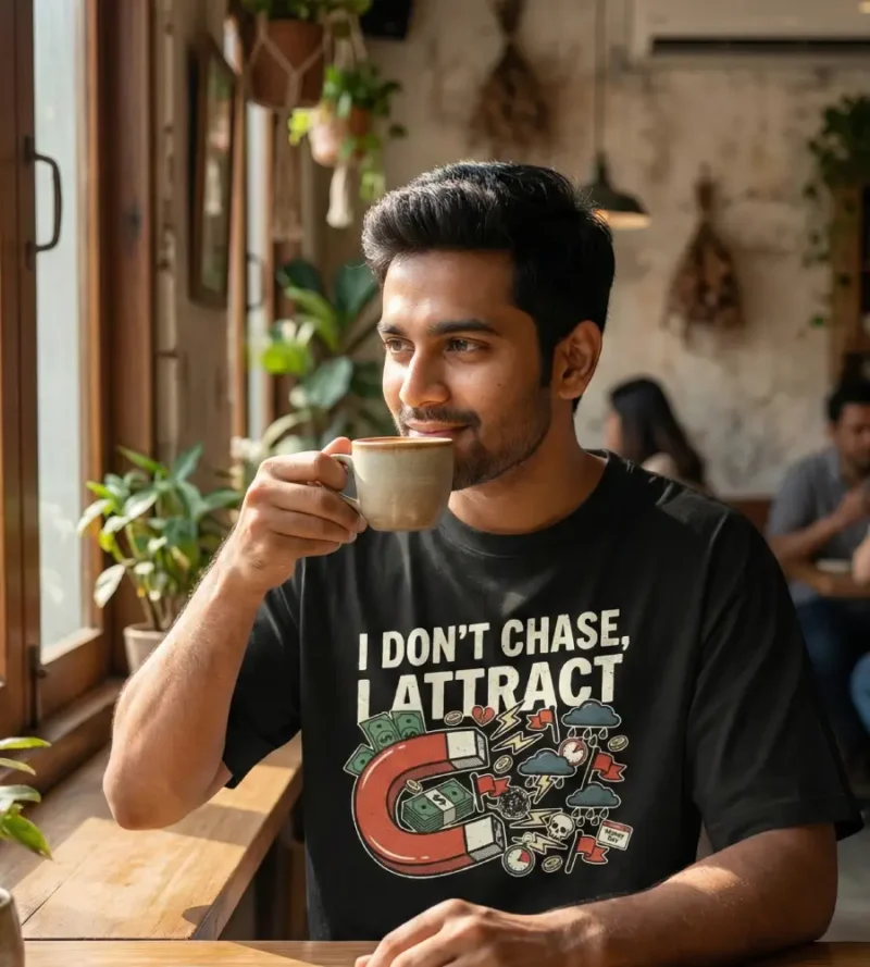 Master the art of magnetism. This bold graphic tee is a daily reminder to let success and wealth come to you while leaving the red flags behind.