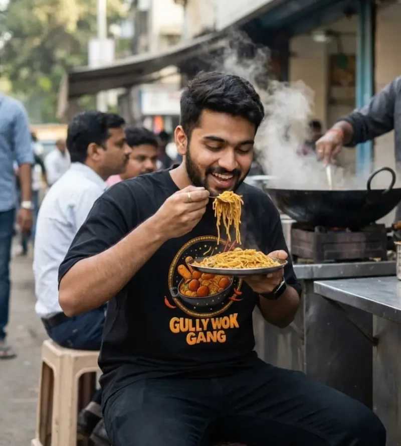 The authentic taste of the streets. Join the squad with this mouth-watering graphic featuring a sizzling wok, spicy noodles, and the bold ‘Gully Wok Gang’ title.