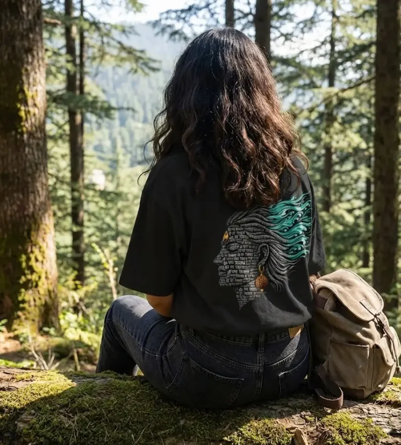 Scripture meets silhouette. A bold spiritual statement piece capturing the essence of Mahadev.