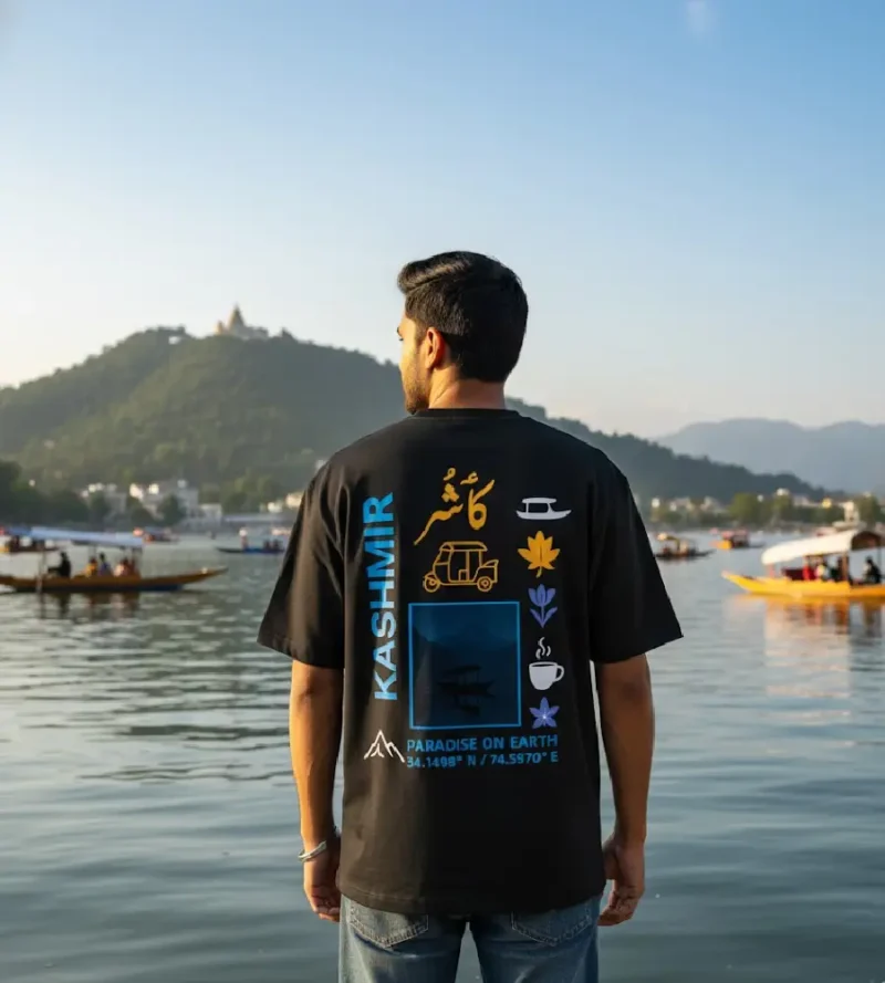 Saffron, snow, and silence. A beautiful tribute to Kashmir featuring Urdu script and iconic symbols of the valley’s rich heritage.